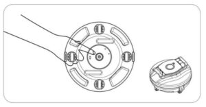 - Appuyez sur le bouton d’alimentation et le voyant vert s’allume. Placez l’appareil avec précaution dans la piscine. Un voyant bleu s’allume une fois qu’il a coulé au fond de la piscine, indiquant que l’appareil fonctionne.