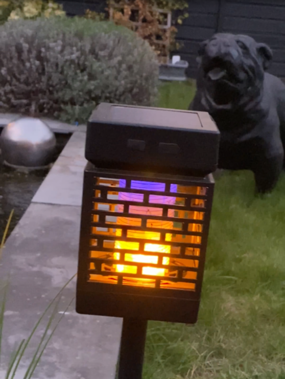 - Lumière jaune orangé avec effet flamme + lumière bleu anti moustiques