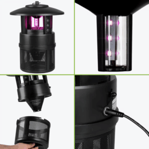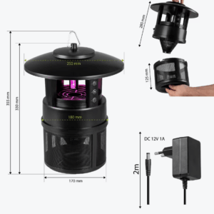 Ref: (003380) – Lampe UV à LED anti-moustiques de jardin. Elle est idéale pour capturer les moustiques et autres insectes volants grâce à son système aspirant et à la pastille Octenol/ Lurex qui attire les moustiques en simulant l’odeur humaine.